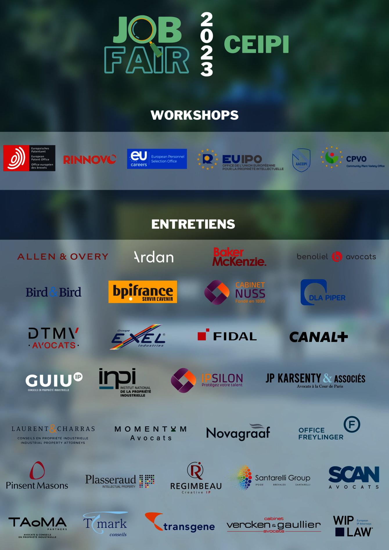 La Job Fair du CEIPI est un événement annuel qui favorise les rencontres directes entre étudiants du CEIPI, professionnels et représentants des nombreuses structures qui font partie de l'écosystème de la propriété intellectuelle au niveau national, européen et international.