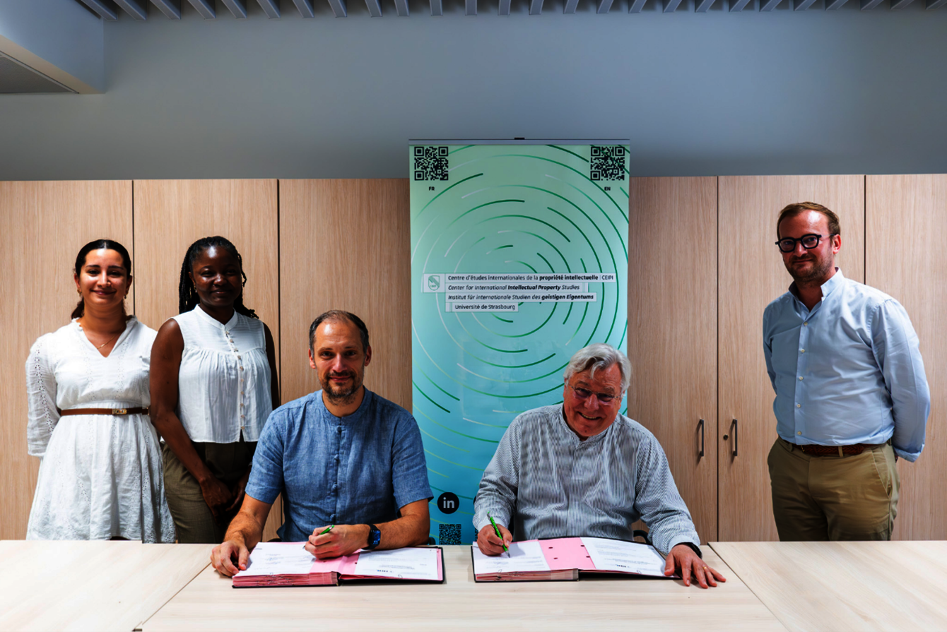 La signature de l’accord a eu lieu le 19 juin 2025 à Strasbourg, en présence du Prof. Kelvin W. WILLOUGHBY, Professor & Chairholder Stiftungsfonds Deutsche Bank Chair of Innovation Management and Entrepreneurship, responsable scientifique du MBA, de Mme Omolade ADEYEMI, Assistante-chercheure pour le programme de MBA à la HHL, de M. Yann BASIRE, Directeur général du CEIPI et les membres du pôle management du CEIPI, notamment M. Thibaud LELONG, Responsables des enseignements MIPLM et Mme Julie DAGHER, Assistante-chercheure au CEIPI.