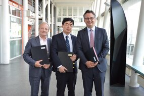 Le CEIPI a eu l’honneur d’accueillir du 6 au 9 juillet 2016 une délégation de l’International Intellectual Property Training Institute, de l’Office coréen de propriété intellectuelle (KIPO) pour une visite de travail et signature d’un accord de coopération. La délégation coréenne était composée de M. Soon-Kee Park, Doyen de l’IIPTI, M. Yun-Sup Song, Directeur adjoint de la Division Examen des Marques du KIPO et de M. Dae-Kyun Lee, Directeur adjoint de l’IIPTI. La signature de l’accord a eu lieu en présence de M. Francis Kern, Vice-Président relations internationales de l’Université de Strasbourg et du Prof. Christophe Geiger, Directeur général du CEIPI.