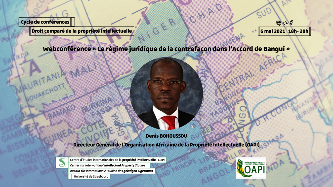 Within the framework of the conference series "Comparative Intellectual Property Law", the Center for International Intellectual Property Studies (CEIPI) is pleased to organize, in collaboration with the African Intellectual Property Organization (OAPI), a conference on the theme “The legal regime of counterfeiting in the Bangui Agreement”.