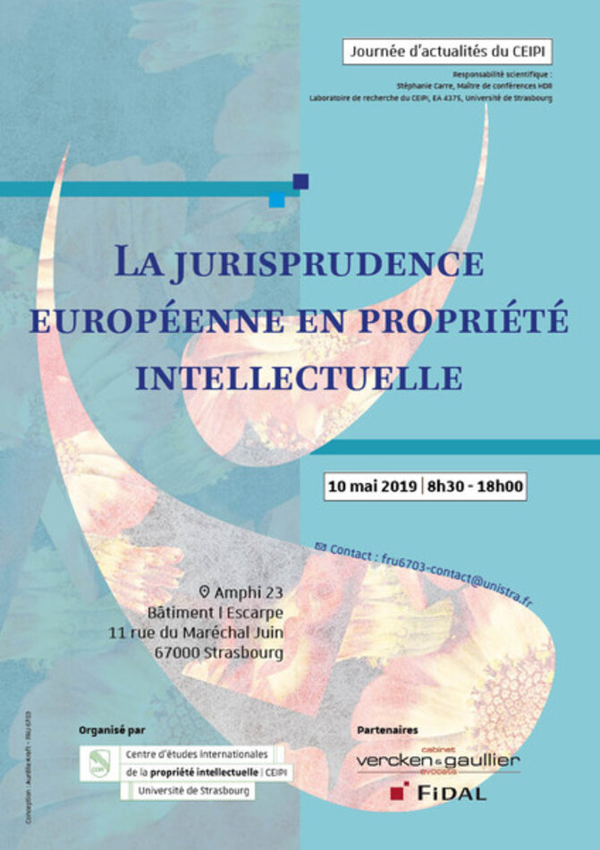 As every year, a one-day seminar, dedicated to European case law in intellectual property, entitled “Intellectual Property at the Court of Justice of the European Union” will be organized by the CEIPI’s Research Department and the Research Federation “L’Europe en mutation”. This day, under the scientific leadership of Ms. Stephanie Carre, Associate Professors at CEIPI, will take place on 10 May 2019, Strasbourg, (Escarpe Building, amphitheater 23).