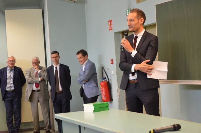 This year, the best students received gifts offered by the INPI (Institut National de la Propriété Industrielle), represented by Mr. Philippe Borne, Regional Delegate of INPI Alsace and the ASPI (Association Française des Spécialistes en Propriété Industrielle de l'Industrie), represented by Ms. Brigitte Ruellan, board member of the ASPI.