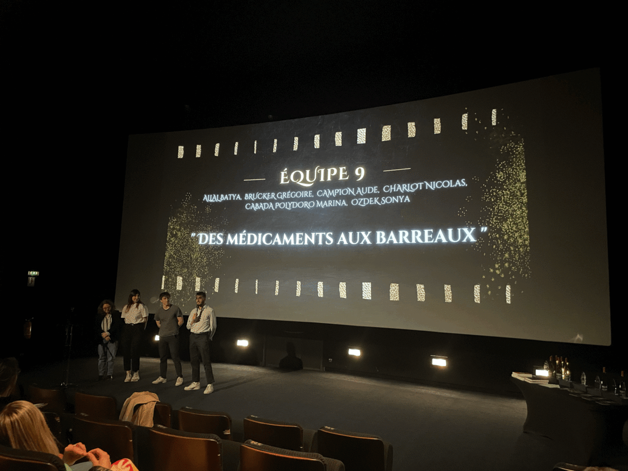• Félicitations à Nicolas Charlot ; Grégoire Brucker ; Aude Campion ; Batya Allal ; Marina Cabada et Sonya Ozdek qui remportent le premier prix avec leur court métrage « Des médicaments aux barreaux »