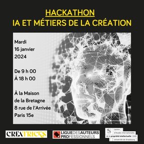 Hackathon sur l’Intelligence Artificielle et les métiers de la création, organisé par Creatricks, La Ligue des Auteurs Pros et le CEIPI