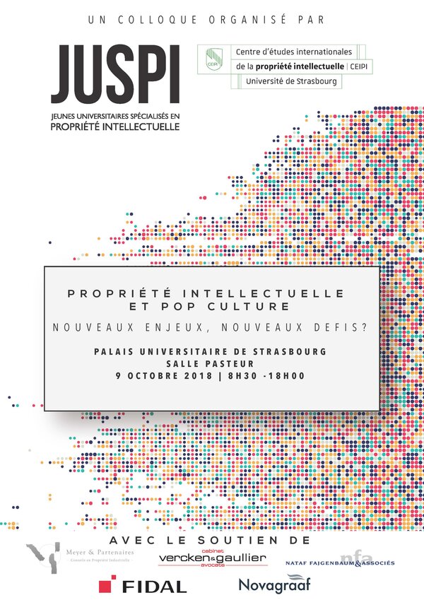 The Center for International Intellectual Property Studies (CEIPI) of the University of Strasbourg and the Association of Young Academics Specialized in Intellectual Property (les JUSPI) organize the conference “Intellectual Property and Pop Culture: New Challenges and strategic issues?”. The…