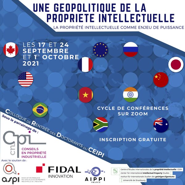 Les doctorants et doctorantes du CEIPI organisent la première édition de leur Colloque de rentrée : « Une géopolitique de la propriété intellectuelle : la propriété intellectuelle comme enjeu de puissance ». Au croisement des relations internationales, de la science politique et du droit de la…