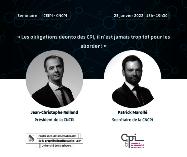 CEIPI is pleased to invite you to the online conference « Horreur et Droit » which will take place on Zoom on 29 October from 1:30 to 5:30 pm, under the direction of Yann Basire, Associate professor in private law, CEIPI, University of Strasbourg, Director General of the CEIPI and Hania Kassoul,…