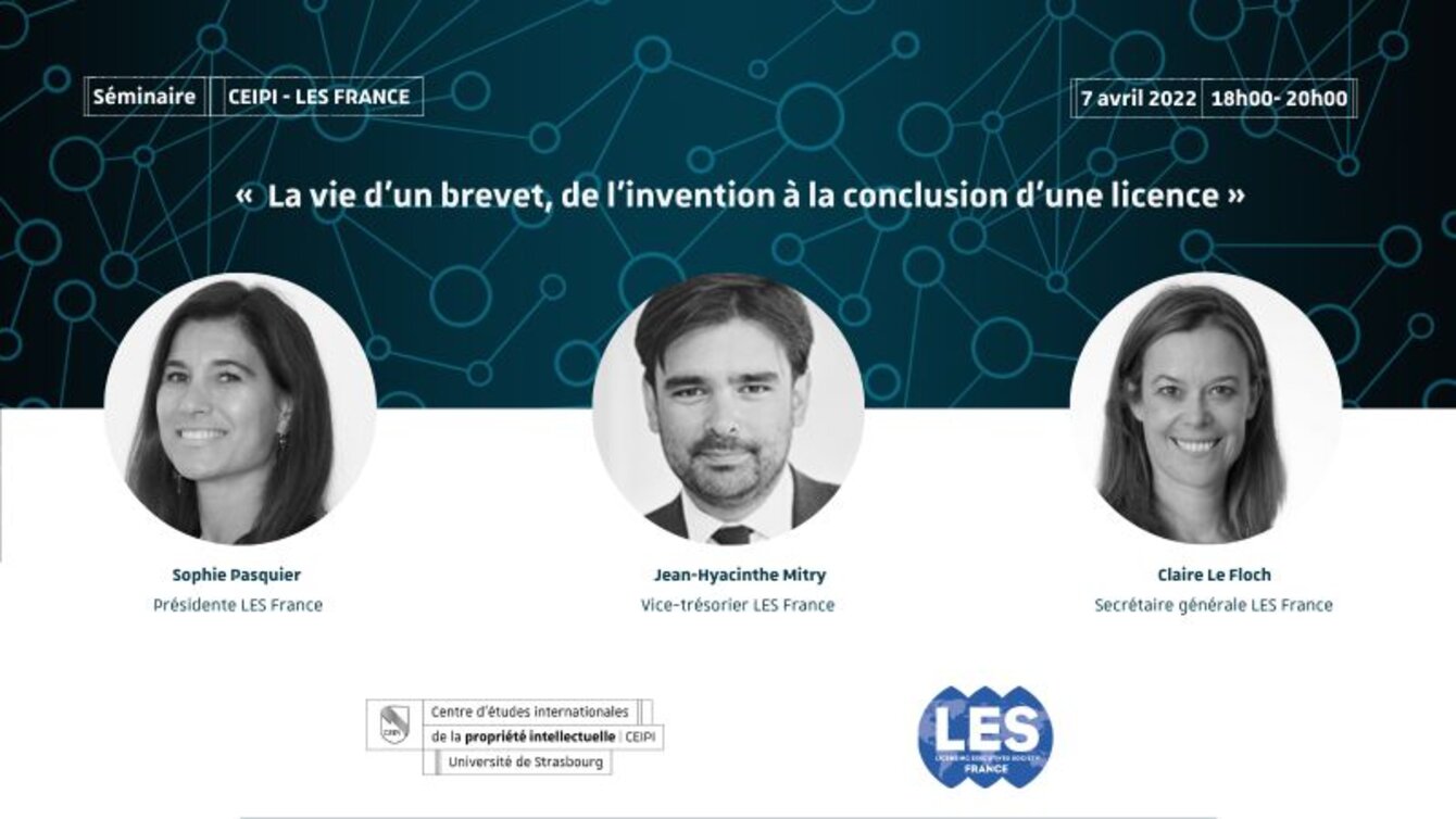 CEIPI invite you to participate in the online seminar "La vie d’un brevet, de l’invention à la conclusion d’une licence", organized in partnership with LES France - Licensing Executives Society to be held on 07 April from 6pm to 8pm.