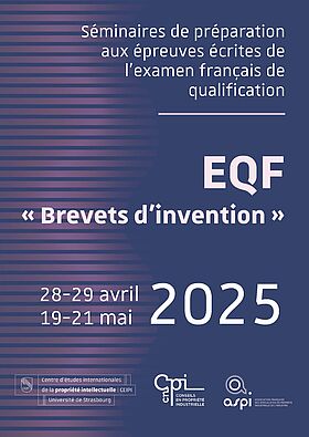 Le CEIPI organise un séminaire de préparation à l’épreuve orale de l’examen français de qualification : « EQF Brevets d’invention ».