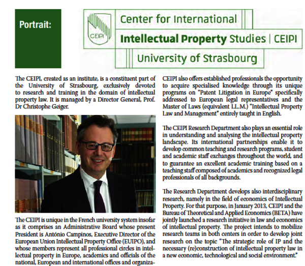 CEIPI and INPI signed in 2014 an agreement to strengthen their cooperation in the legal training of intellectual property and to develop common areas of research. As part of this collaboration, CEIPI and INPI have decided to implement several activities, by means of annual conventions. The annual…