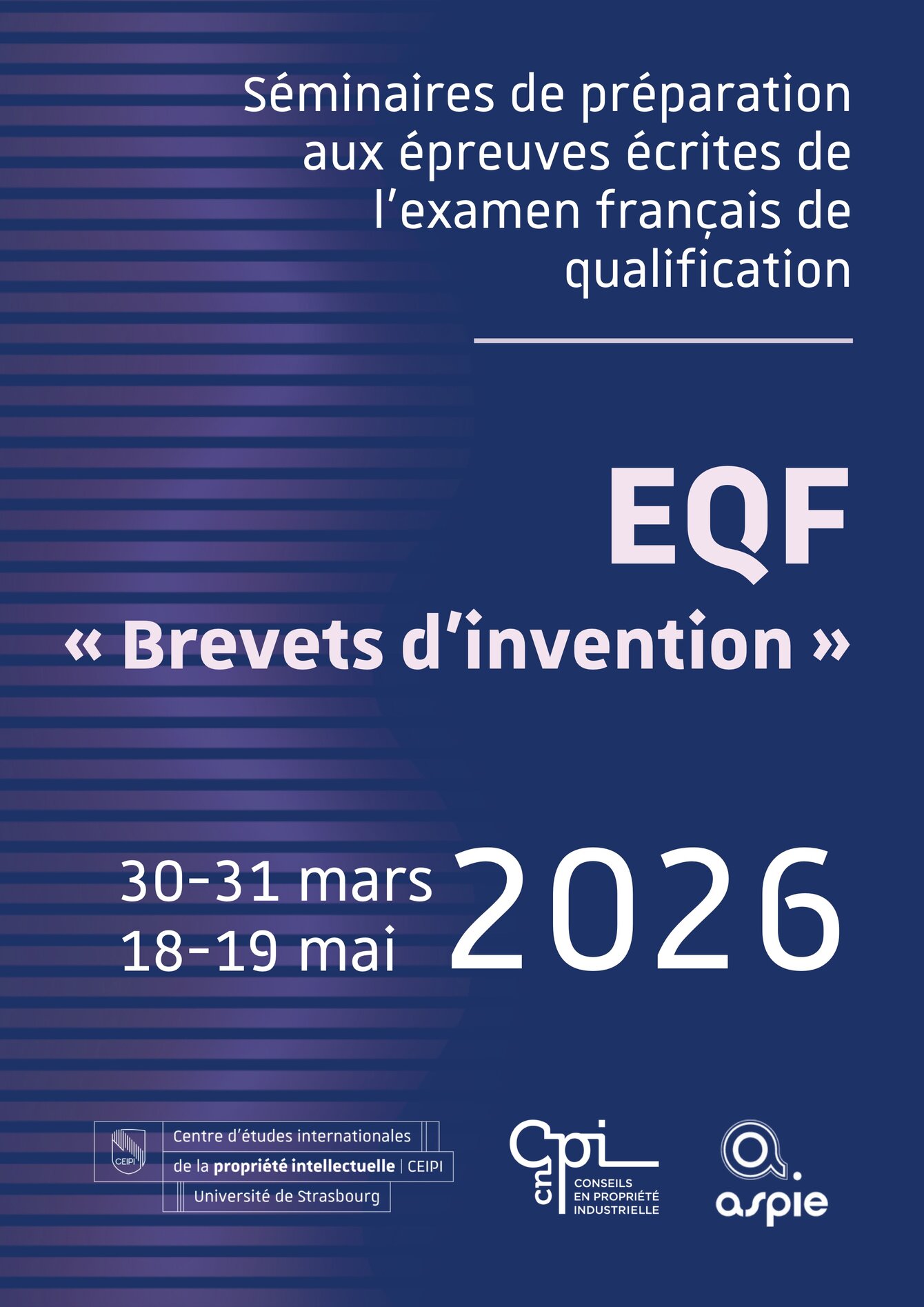Préparation à l'EQF - Brevets d'invention - 30-31 mars 2026 et 18-19 mai 2026
