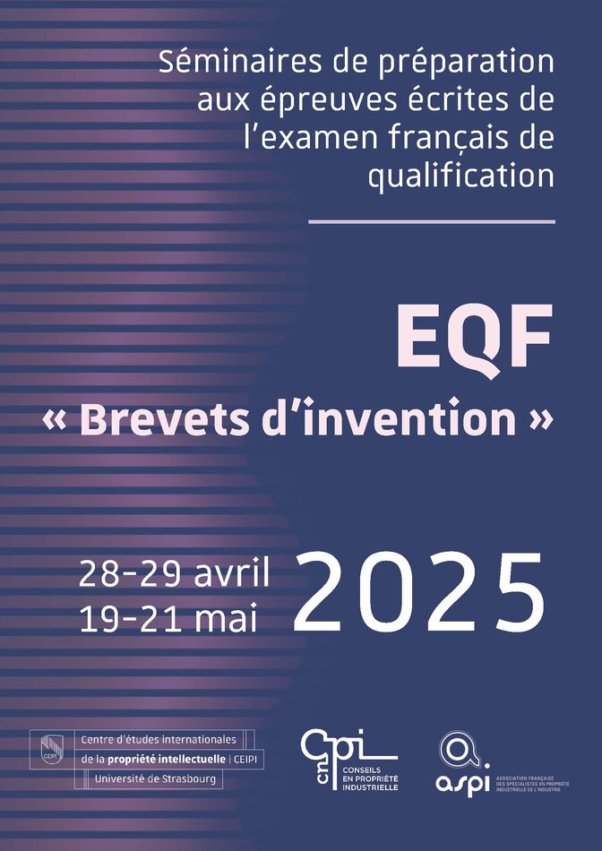 Le CEIPI organise un séminaire de préparation à l’épreuve orale de l’examen français de qualification : « EQF Brevets d’invention ».