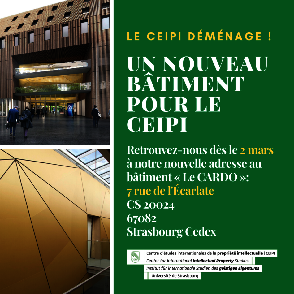 Nous vous invitons à suivre toute l'actualité du CEIPI sur les réseaux sociaux : LinkedIn / Twitter / Facebook / Instagram / Youtube