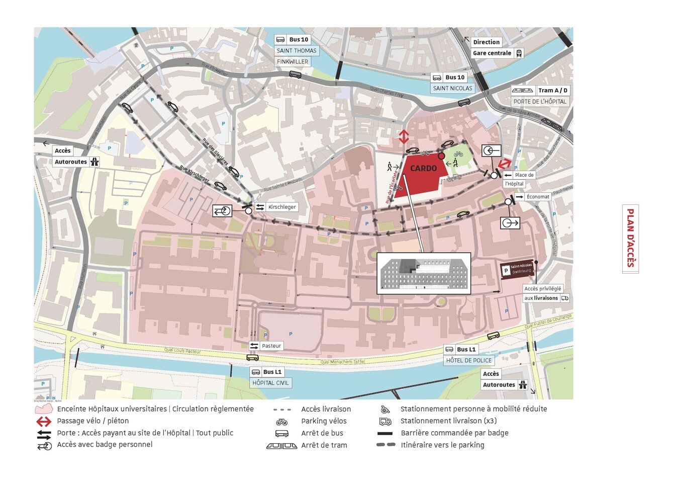 Prendre le tram A ou D et descendre à l'arrêt « Porte de l'hôpital ». De là il ne vous restera que 5 minutes de trajet à pied pour rejoindre le CARDO.