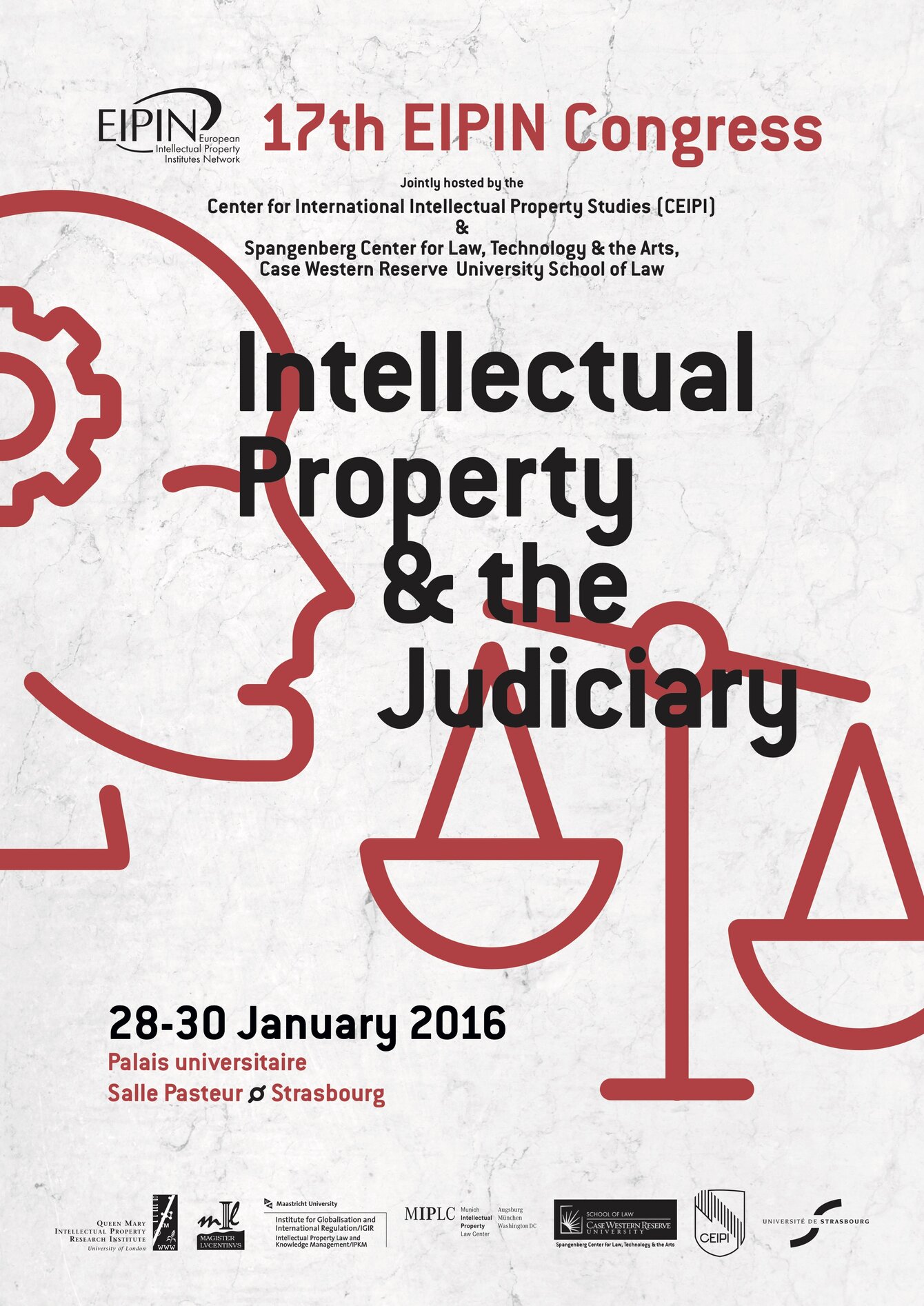 Le Centre d’études internationales de la propriété intellectuelle a organisé, en partenariat avec les membres du réseau EIPIN et le Spangenberg Center for Law, Technology & the Arts (Case Western Reserve University School of Law, Cleveland, USA), le 17ème congrès EIPIN, du 28 au 30 janvier 2016, au Palais universitaire à Strasbourg. Le thème du congrès a porté sur « La propriété intellectuelle et le pouvoir judiciaire ».