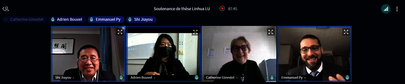 Membres du jury : Adrien Bouvel, directeur de thèse, Maître de conférences, HDR, Université de Strasbourg, Catherine Ginestet, rapporteur, Présidente du jury, Professeure, Université de Toulouse Capitole, Emmanuel Py, rapporteur, Maître de conferences, HDR, Université de Bourgogne et Jiayou Shi, President suppléant, Professeur, Université de Renmin (Chine).