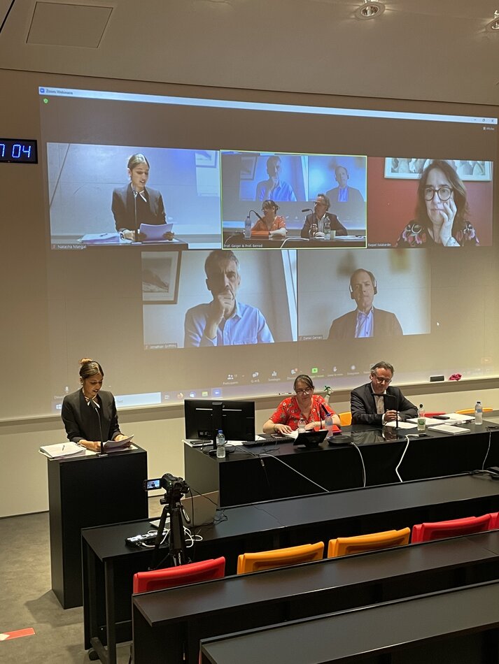 Membres du jury (de gauche à droite) : M. Nicolas Binctin, Professeur Université de Poitiers, Faculté de Droit et Sciences Sociales, Mme Joanna Schmidt-Szalewski, Professeur émérite, Université de Strasbourg, Mme Dionysia Kallinikou, Professeur Université Nationale et Capodistrienne d’Athènes, M. Theodoros Chiou, M. Christophe Geiger, Directeur général du CEIPI, Mme Séverine Dusollier, Professeur Sciences Po Paris, M. Jacques De Werra, Professeur Université de Genève.